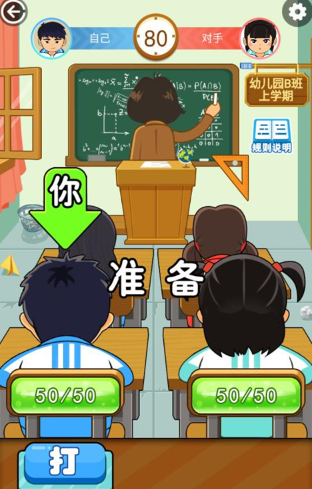 模拟课堂情境的限时双人对抗小游戏,单局时长固定为60秒。双方需同步完成点击、拼图、连线等基础交互任务,同时规避“老师回头”“班主任巡查”等随机干扰事件。内含20余种迷你玩法,每局自动轮换,避免重复感。操作仅需单指点击与拖拽,符合学龄前及小学低年级儿童手部发育水平,强调即时反应与轻度策略干扰,亲子间可自然形成互动张力。