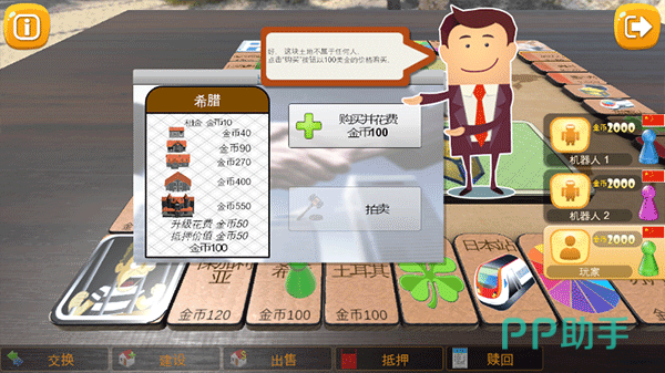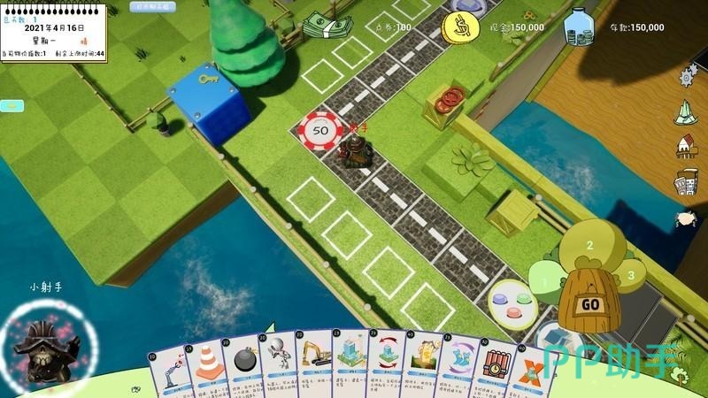 本作重构底层经济框架,首次引入双轨货币体系(现金+信用点),并拓展地产开发阶段至三级建设。每回合固定发放策略卡,可用于土地升值、锁定骰子点数、部署路障设施等。路障可设置于自有地产格,对经过玩家强制征收通行费用,强化区域控制与被动收益能力。