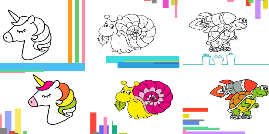 面向色彩启蒙阶段儿童,内置建筑物、动物、交通工具等1000+基础认知类线稿。采用三原色渐进教学法:第一阶段仅开放红黄蓝三色,第二阶段增加橙绿紫,第三阶段解锁全色盘,系统自动记录配色选择频次。