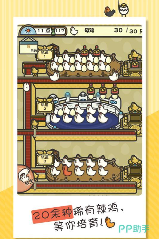轻松治愈向模拟养成游戏,主打趣味性与收集成就感。玩家扮演农场管理者,从孵化、喂养到成长全过程参与小鸡培育。创新引入合成进化系统,通过组合基础品种解锁形态各异的幻想鸡种,图鉴系统完整收录全部变异形态。采用简约手绘风视觉设计,线条明快,动态音效还原真实鸡鸣,营造轻松魔性的交互氛围。