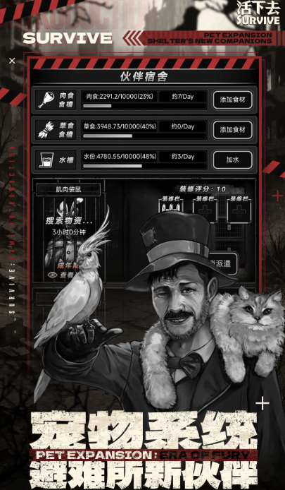 这是一款以写实叙事驱动的单机生存手游。玩家需在资源匮乏的废墟中搜寻药品、工具与建材,逐步构建可防御、可扩展的安全据点。游戏采用黑白美术风格,配合大量手写文本与环境叙事,营造出厚重压抑的墓土氛围。地宫探索环节设计精巧,僵尸波次压迫感强,战斗系统支持近战强化、远程改装及动物伙伴协同作战,角色成长路径清晰,生存反馈真实可信。