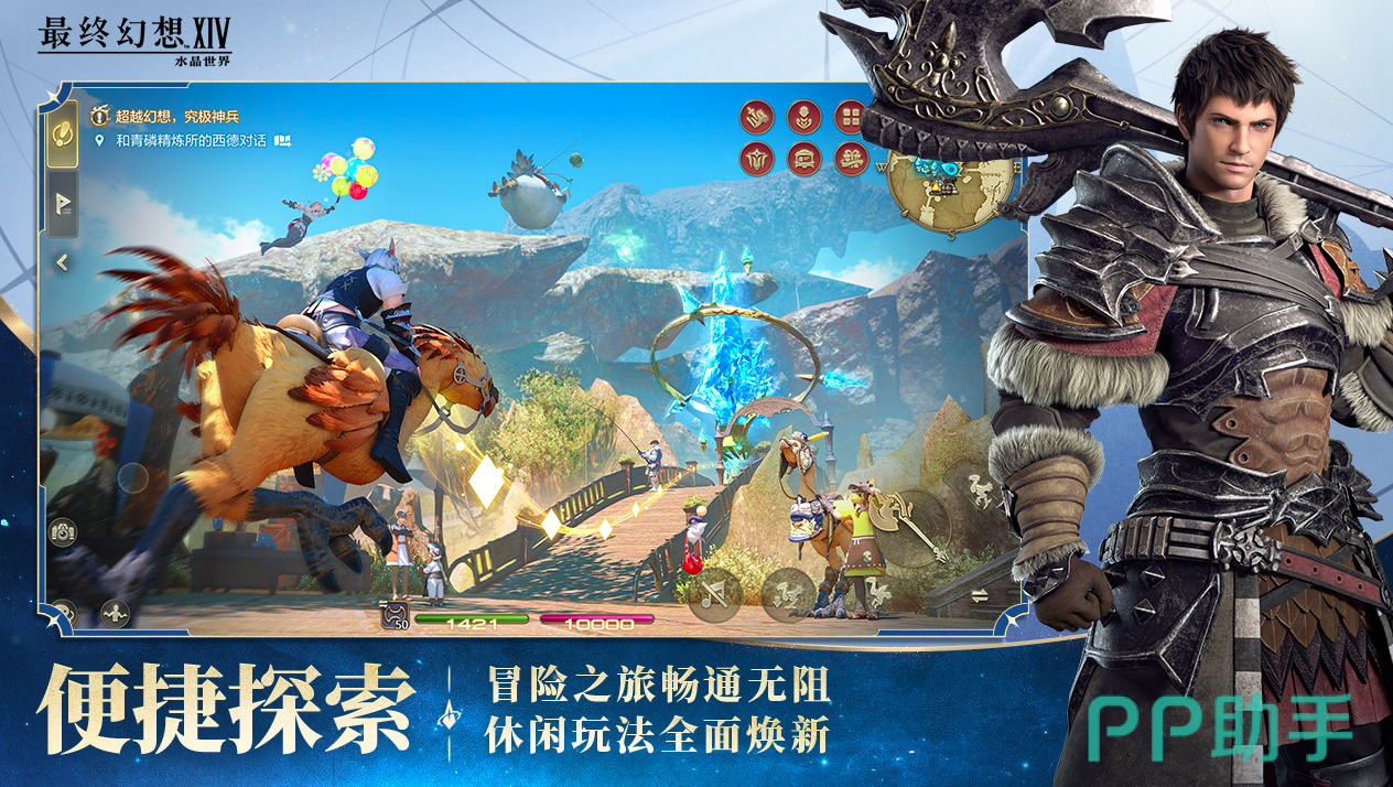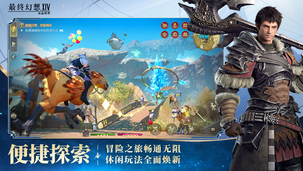 《最终幻想14:水晶世界》完整继承端游原作世界观与剧情架构,将“艾欧泽亚”大陆的史诗篇章浓缩为高品质手游体验。从利姆萨·罗敏萨到乌尔达哈,六大城邦风貌悉数还原;主线任务全程配音,关键NPC形象严格遵循原设。社交系统深度优化,支持公会协作、跨服组队与实时语音;休闲玩法涵盖金碟游乐场纸牌对战、陆行鸟竞速等多元内容,兼顾硬核副本挑战与轻度日常互动。
