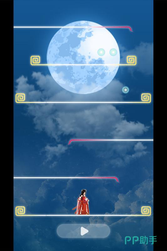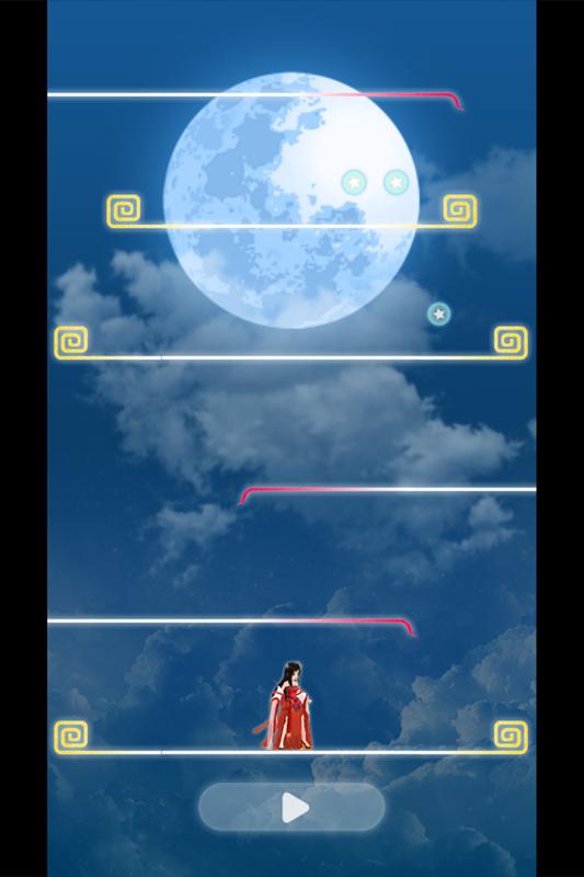 本作灵感源自“嫦娥奔月”古典传说,构建出一座悬浮于星穹之上的动态月阶。玩家操控角色在长短不一、随节奏起伏的阶梯间跃升,目标直指皎洁月轮。场景采用深蓝渐变夜空与银白月晕交织的视觉语言,配乐全程使用古筝、箫与编钟演绎的原创国风纯音乐,强化空灵悠远的意境节奏。