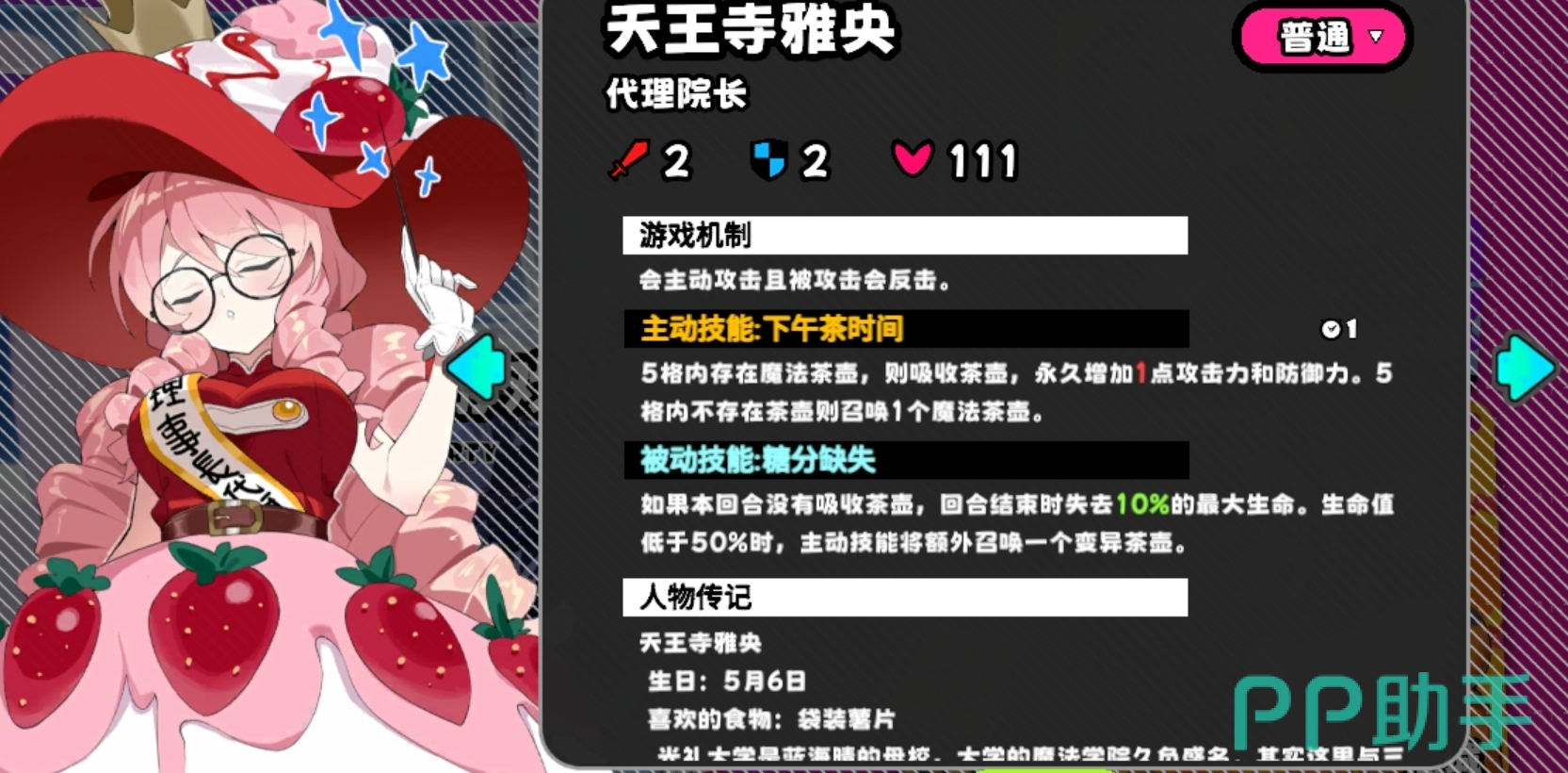 进入图2后,代理院长正式登场。她的核心机制是“无茶壶减血”——当周围不存在魔法茶壶时,每回合开始会损失一定生命值。这一设定可被主动利用:仅保留茶壶不攻击Boss,使其持续掉血;待血量降至安全阈值(建议保留约30%血量),再集火爆发终结。若遭遇的是安全官,则图1阶段策略略有不同:需优先击杀果冻护卫,待第4回合新怪刷新完毕后,再击破果冻战士进入图2。
