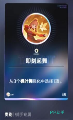 阿离的核心被动名为“枫叶舞”,可指定一名己方英雄建立深度绑定关系。当该绑定单位进行普通攻击时,将为阿离生成护盾,并使其瞬移至纸伞所在位置;完成位移后,触发额外机制响应。而真正驱动整套体系运转的关键,是她的主动天赋“奇舞”——该天赋提供三项差异化强化路径:其一为持续生命回复,其二为等级成长加成,其三则影响技能协同效率。每次抉择均直接影响后续战力曲线与阵容适配逻辑。