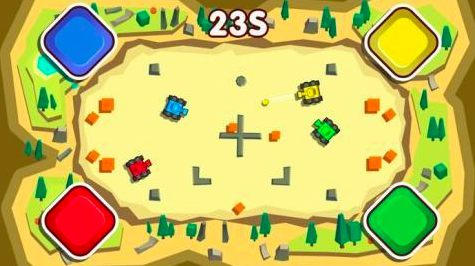 快节奏俯视角射击对抗,《四人坦克大战》单局时长控制在3至5分钟,适配碎片化聚会时段。四色坦克对应四位玩家,操作直观易掌握;地图覆盖山地、平原、火山入口等多种地形,配合四种PvP竞技模式,增强战术纵深与重玩价值。