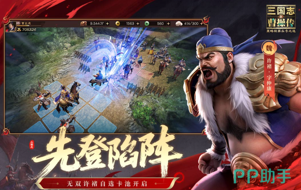 聚焦曹魏阵营视角的高拟真战棋作品,采用写实美术风格与精准历史考据相结合的设计思路。武将立绘保留东汉末年甲胄形制特征,技能体系严格对应史料记载的统兵特点(如张辽“威震逍遥津”强化骑兵突击、郭嘉“十胜十败”提供战前增益)。棋盘为标准8×8方格布局,支持高低差地形判定与视野遮蔽机制,战斗动画还原冷兵器交锋细节。卡池系统仅用于解锁隐藏剧情与特殊兵种,不影响基础战力成长路径。