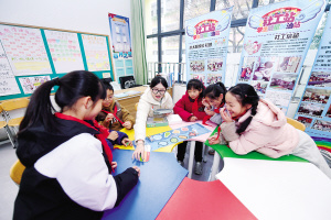 在金康园小学里,社工引导小学生开展社团活动。 记者王俊星摄
