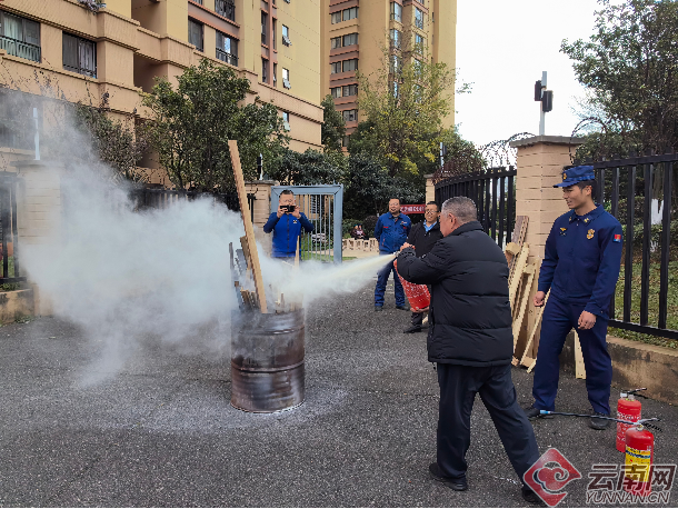 “电动自行车能否停放在单元楼内?”“做饭时油锅着火怎么办?”近日,一场别开生面的消防安全“院坝课堂”在昆明市五华区黑林铺街道沙沟社区怡合景苑小区开讲,辖区内高层建筑管理单位代表、社区网格员、物业人员及居民齐聚一堂,在互动问答与实操演练中学习消防安全知识。