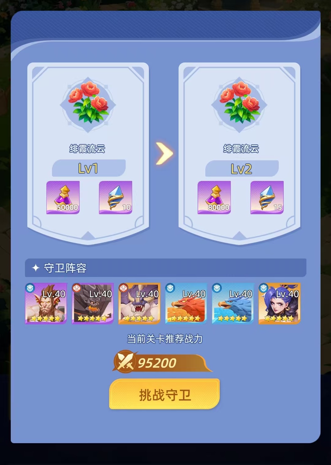 橙雪仙蕾花园主要掉落偏后期的功能性资源,例如洗练精粹和幻兽圣水,这两种资源影响队伍的上限和多样性。花园升级可以通过挑战守卫来完成,当战力提升之后,达到升级条件时就可以直接发起挑战。挑战成功后立即会获得一次不消耗收获次数的奖励,以及开垦一块全新的花园土地,能提升后续的资源产量。失败也没有关系,不会有任何损失。这项活动的最佳节奏就是先升级然后再收获,根据需要去收取资源。