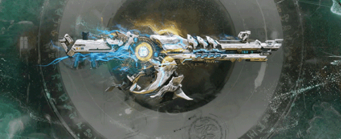 天策含光的构筑复杂而精妙,在枪身之内有着精密仪器的缓慢运作,仿佛蕴含着天地奥秘,这同时也是其核心动力,可驱动千机之变化,其左右两侧的能量槽化成光环的模样,寓意着无穷的变化和智慧。