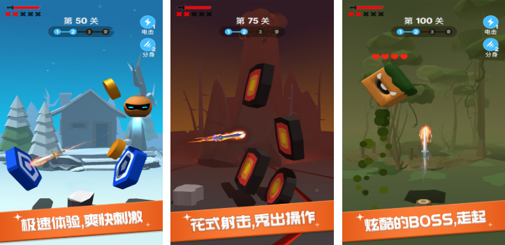 《这就是飞刀》融合闯关推进与Boss战双线结构,关卡中嵌入障碍物反弹、多层靶面叠加、限时连击评分等进阶机制。飞刀种类按攻击特性划分:贯穿型可穿透多个目标,爆裂型触发范围伤害,磁吸型自动修正弹道。所有音效均基于真实飞刀音频采样制作,击中反馈清晰可辨。