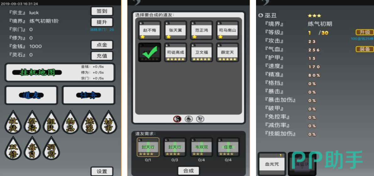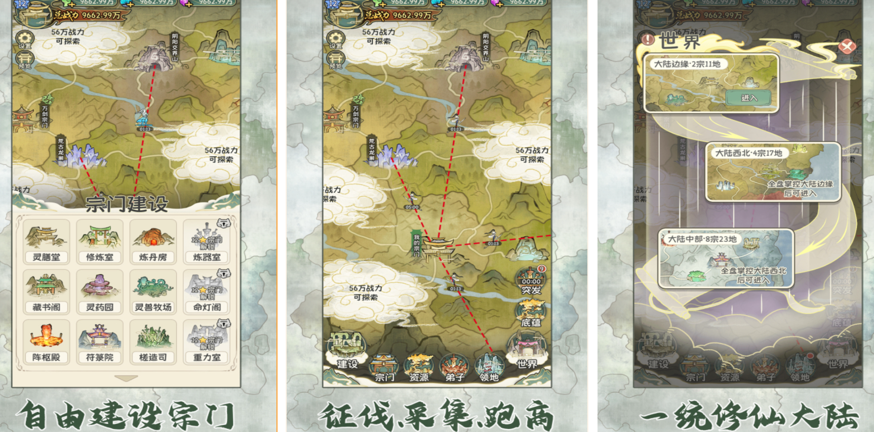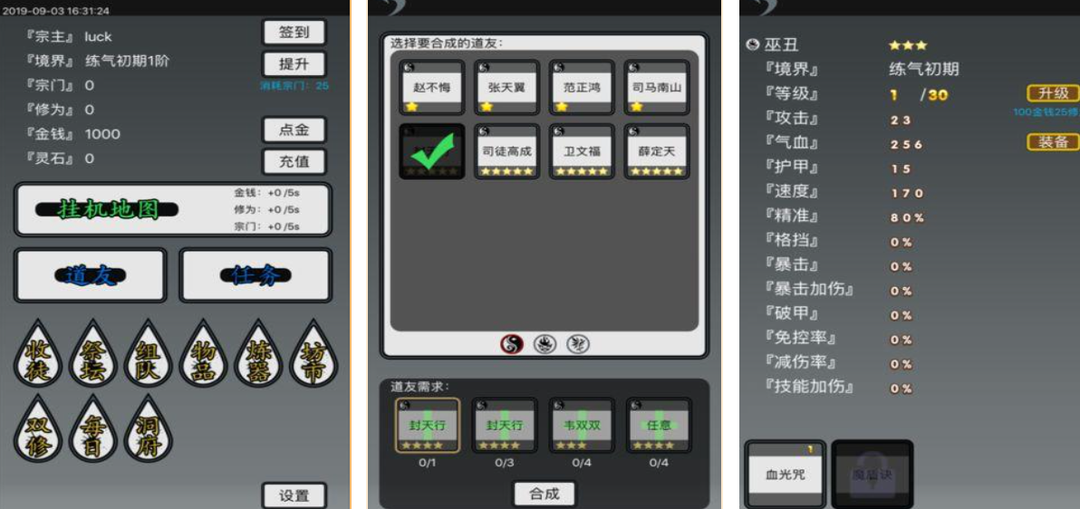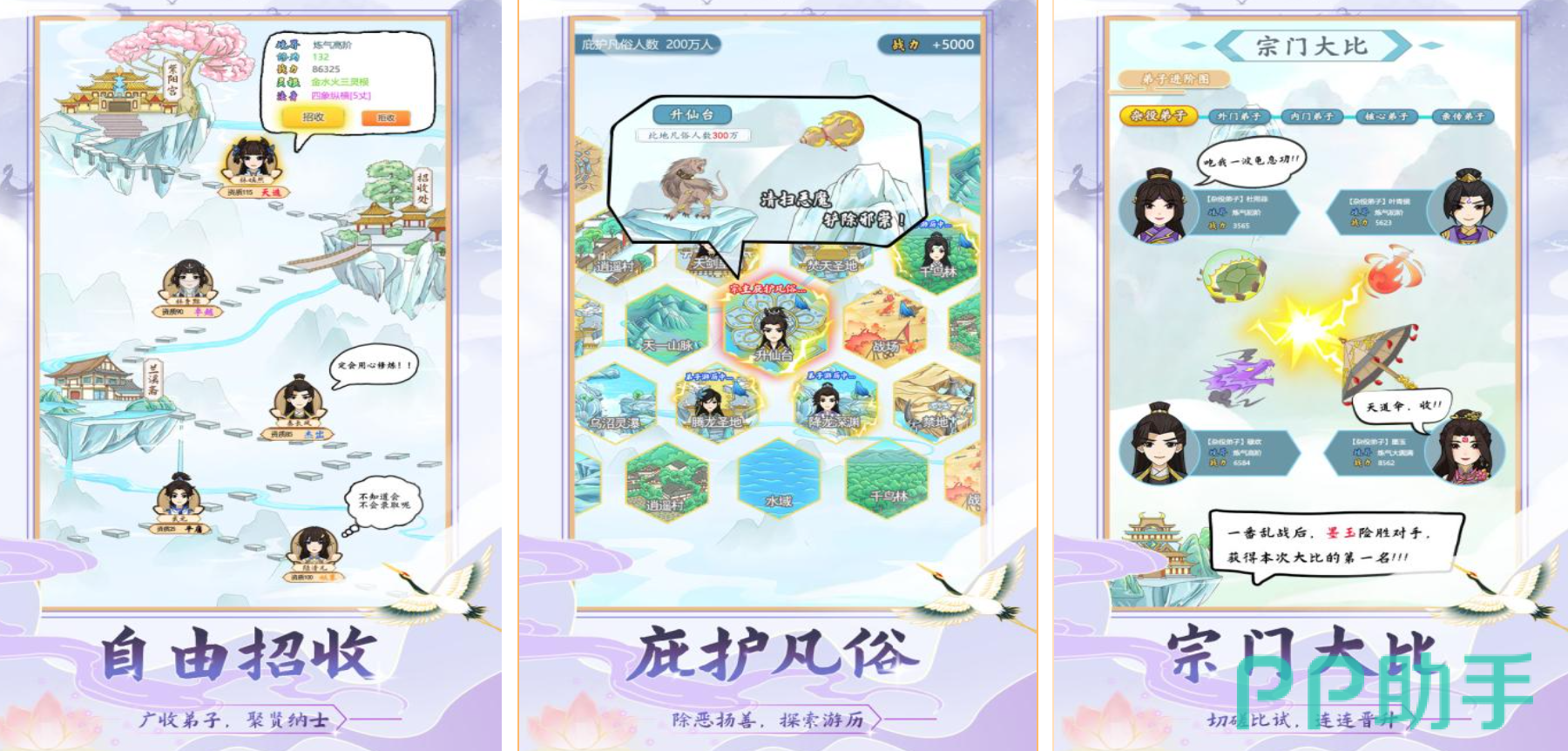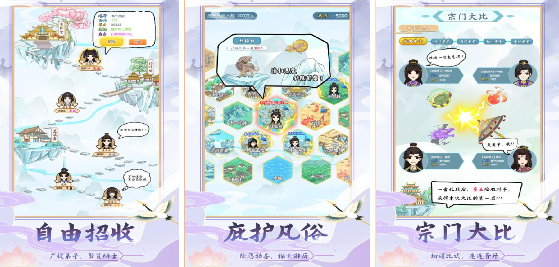 本作将核心玩法转向宗门宏观治理。玩家以开山祖师身份白手起家,在荒芜山岭选址建派,甄选灵根优异的弟子入门,规划聚灵阵、炼丹房、藏经阁等功能建筑,并经营灵田、药圃等资源产出模块。每位弟子具备独立性格、悟性、忠诚度与成长倾向,职务分配需兼顾特长与门派发展节奏。此外支持跨服门派战、随机生成秘境探索及守山护派实时战斗等多元交互机制。