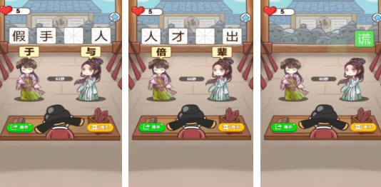 独创“二选一”交互机制,聚焦成语类灯谜。谜面以遮蔽关键汉字形式呈现(如“画龙点□”),玩家需凭借语感与构词逻辑完成判断。内置爱心值系统:初始3心,每错1题扣1心,归零即终止挑战;NPC角色以拟人化方式出题并给予反馈,增强情境代入与轻度竞技张力。
