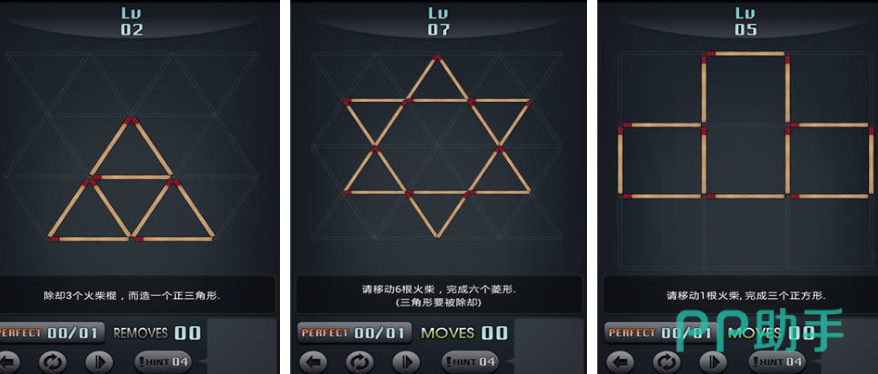 本作摒弃繁复设定,回归智力解谜的本源——火柴棒拼图。玩家需通过移动、添加或移除指定数量的火柴,修正错误的数学等式,或重构特定几何图形。虽规则简洁,但关卡总量逾千,难度层层递进,每一道题都要求跳出惯性思维,重新定义“可能”与“限制”的边界。