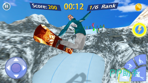 采用全3D建模技术构建真实雪域环境,场景覆盖阿尔卑斯山脉、北欧极地、北美落基山等多个地理原型。动态光影系统精准呈现雪面反光、飞雪粒子与天气变化效果;UI界面随滑行速度实时缩放与位移,增强临场沉浸感。核心玩法聚焦技巧表现,玩家通过触控完成腾跃、空翻、转体等高难度动作组合,并支持在线多人实时分数比拼。