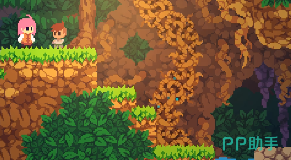 这个需要咱们跳起来将其给打落然后将其打碎才行,在打碎之后会有着一定的概率获取到浆果,在更进一步探索之前我们先去存个档。前方有两个NPC,我们可以对话一下,旁边的尖刺果也将其给打碎。接着便可以进入到下一个场景,进入后前方有一个青蛙,我们将其给击败后可以获取到青蛙腿,上方的尖刺果不是很容易打到,我们需要注意。