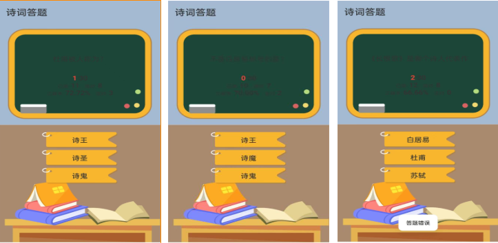 《诗词论剑》构建武侠叙事框架,将诗词知识嵌入“文斗”主线。玩家需通过多重答题路径解锁剧情:包括作者辨识、残句补全、体裁判断、押韵分析等维度。关卡中穿插虚构但符合史实的诗人轶事与时代背景说明,增强代入感。所有题目均严格对照《义务教育语文课程标准》古诗文推荐篇目,确保内容权威性与教学适配性。