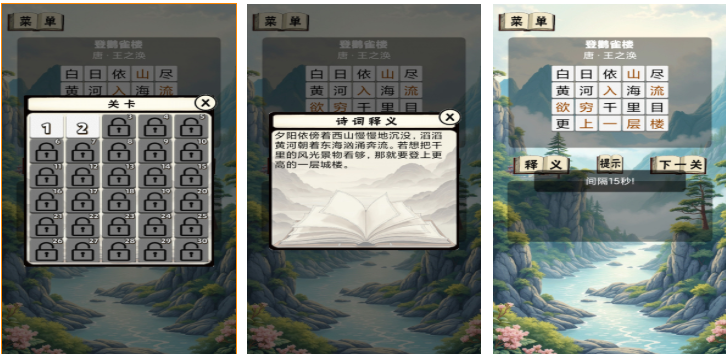 近年来,融合中华优秀传统文化与互动解谜机制的古诗词类轻量级手游持续升温。这类应用以语文核心素养为设计内核,将背诵、理解、赏析等学习环节转化为趣味性闯关体验,尤其受到学生群体、国学初学者及诗词爱好者的青睐。通过沉浸式剧情、逻辑推理与语境还原等方式,玩家在完成任务的过程中自然掌握诗句出处、作者生平、意象内涵与格律常识,实现寓教于乐的深度学习效果。