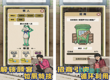 打破传统模拟经营题材边界,本作将创业场景锁定在公共卫生间这一日常却少被关注的空间。玩家需统筹设施布局、卫生评级、隐私隔断优化及人流疏导策略,每个升级选项均对应真实运营痛点。任务系统融合黑色幽默与荒诞设定,例如应对突发堵漏、调解隔间争执、定制香氛方案等,在策略深度与喜剧张力之间取得平衡,赋予轻度经营玩法以新鲜叙事维度。