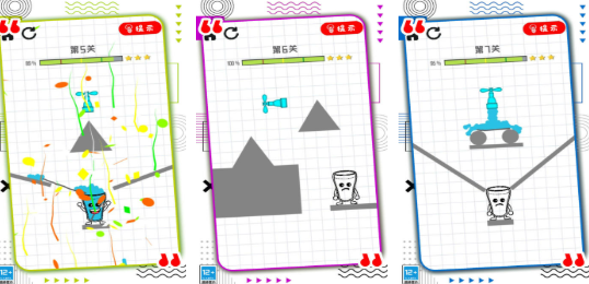 极简交互设计下的硬核物理谜题体验,全程仅依赖“划线”一种操作完成关卡目标——引导液体流入指定容器。但实现路径远非直线可达:需综合判断材质吸水性、重力方向偏移、障碍物反射角度及断桥衔接逻辑。关卡内置大量干扰结构,如可穿透尖刺、临时吸水海绵、动态升降平台等,鼓励试错与多解思维,拒绝唯一通关范式,强化过程中的即时反馈与认知刷新感。