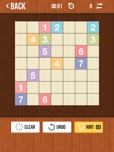 基于经典NumberLink规则开发,所有数字均以成对形式出现,玩家需为每组相同数字绘制唯一非交叉路径,覆盖全部空白格。随着网格尺寸从5×5逐步扩展至12×12,数字密度显著提升,路径规划复杂度呈指数级增长,考验全局视野与局部预判能力。