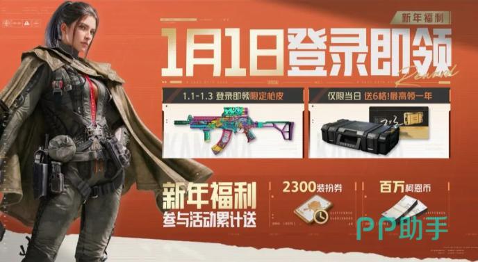 新年当天只要登录就可以得到6格安全箱礼包,这个安全箱可以让玩家在一年内保存更多的战利品,最多能开出365天的6格安全箱体验时间。同时还有特别限定枪械涂装奖励,例如动感舞步·ace31,1月1日到3日期间登录即可领取。