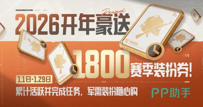 1月1日到29日,期间完成每周任务还可以积累积分,最多获得1800赛季装扮券,用于兑换各种时装或者装饰品。在1月1日到15日之间,还可以参与“集结上暗”活动,和回归老兵或者新手一起开局就能领取额外的500赛季装扮券。