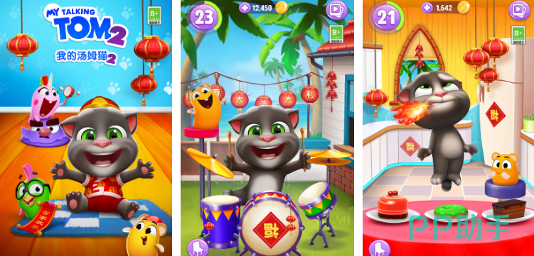 这是一款拟真宠物养成类应用,主角是名为汤姆的虚拟猫咪。玩家可通过点击、拖拽、语音输入等方式与它互动:喂食、清洁、哄睡、挠痒等日常照料动作均有对应动画反馈。特别的是,语音复读功能支持实时录音播放,增强代入感;情绪系统会根据互动频率与方式变化汤姆猫的行为表现,如打哈欠、伸懒腰、撒娇翻滚等,带来稳定的情感陪伴体验。