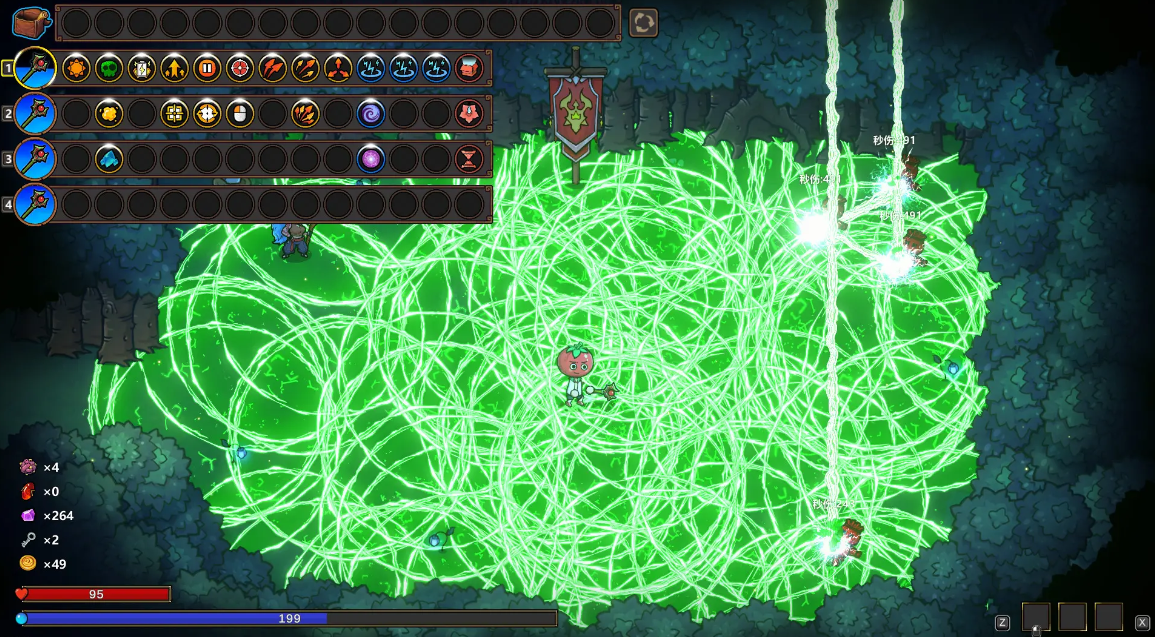 增加飞弹数量的方式比较多,只要法力值和法力回复以及法杖的格子够多,那么攻击时能够释放的数量就越多。
