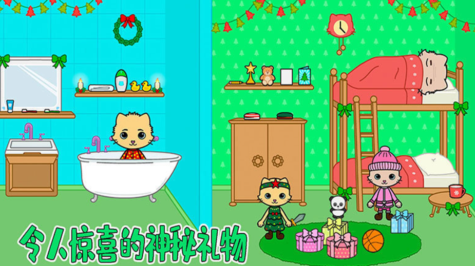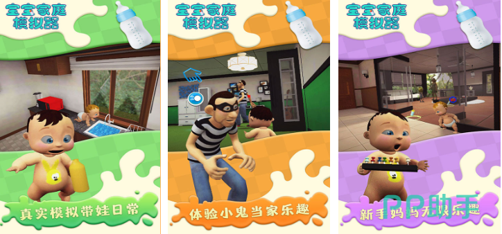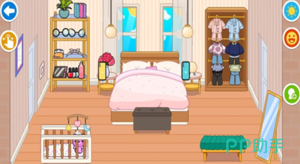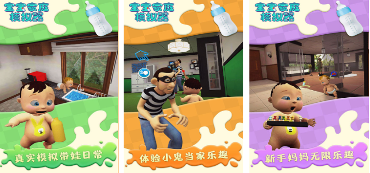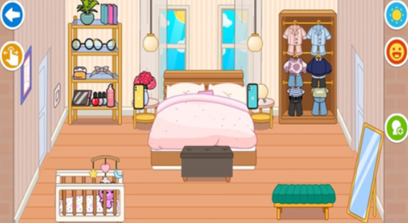 《宝宝家庭》以婴幼儿第一视角展开,构建了一个安全、开放且细节丰富的家庭环境。玩家扮演一名学步期宝宝,在三层独栋住宅中爬行、抓握、躲藏、模仿大人行为。游戏强调物理反馈与感官刺激,如敲击不同材质发出对应音效、拉动窗帘改变室内光线等;所有互动均基于真实婴幼儿发展里程碑设计,兼具娱乐性与早期启蒙价值。