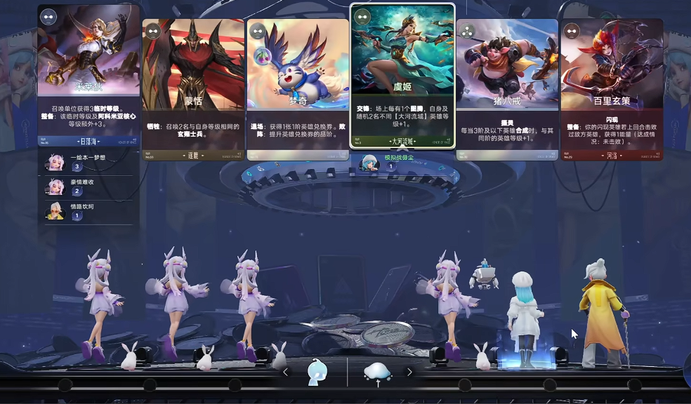 大概过了三个回合就进入拍卖行了,在这里能开始选购英雄了,如果此时出现核心英雄的其中一个,建议快速购买,因为到了后续回合基本上需要全场开始战斗了,这边推荐解锁虞姬,这样我方中期战斗力就有了,后续出现拍卖行的时候,依次将核心英雄全部解锁。
