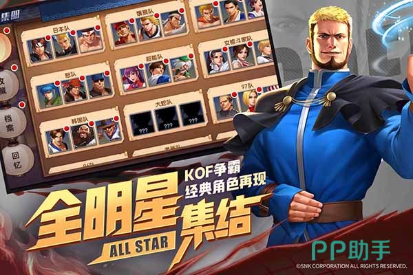 该作深度整合经典格斗IP资源,同步引入《拳皇》与《侍魂》系列代表性角色,保留原作标志性招式与必杀技逻辑。创新采用阵地轮换制战斗框架,支持最多6名角色编队参战,玩家可动态切换主控单位,实现输出节奏调控、防御资源分配及减伤协同部署,大幅拓展战术组合空间。