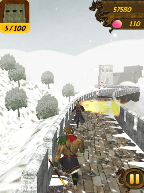 创新融合跑酷与RPG元素,以“取经之路”为叙事主线。玩家操控悟空沿万里长城奔袭前行,途中遭遇随机刷新的妖魔拦截,需及时闪避障碍、发动攻击并收集金币资源。筋斗云与白龙马双坐骑系统提供加速加成,显著提升跑酷效率;地图分段设计,每段对应不同地貌与敌群配置,增强探索多样性与重复可玩性。