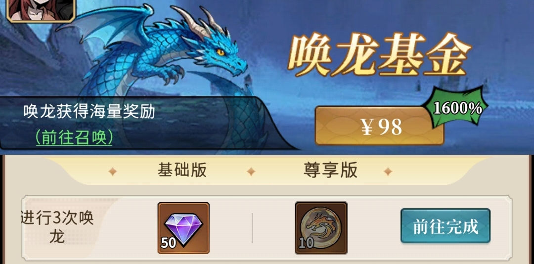 基金:游戏共有七种基金,购买优先级超值基金>尊享基金>成长基金=召唤基金>幸运基金>专武基金>唤龙基金。