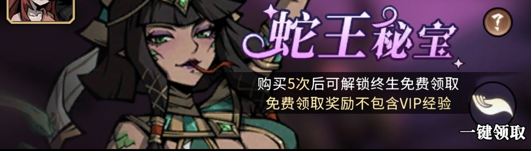 蛇王秘宝:每种礼包只需购买5次,往后便能每天免费领,长期玩收益高。建议冲榜玩家和霸服大佬全买,全部礼包共计需花费108元,月卡党和战令基金玩家用来累计消费金额激活月卡。