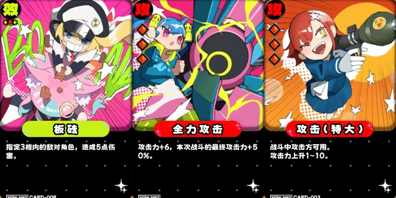 必拿核心手牌:攻击(特大)、名刀:嘎唔切、蓄力、全力攻击、板砖、以牙还牙、防御(特大)。