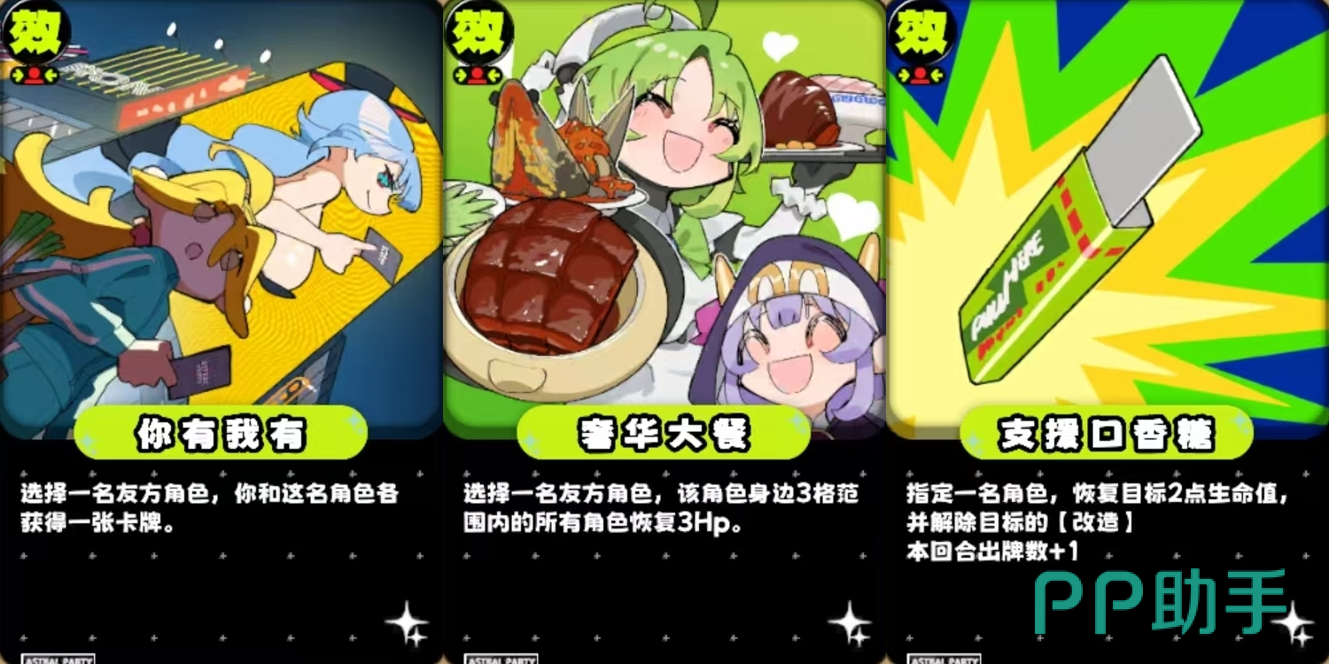 必拿核心手牌:你有我有、奢华大餐、友情口香糖、能量口香糖等、防御(特大)。