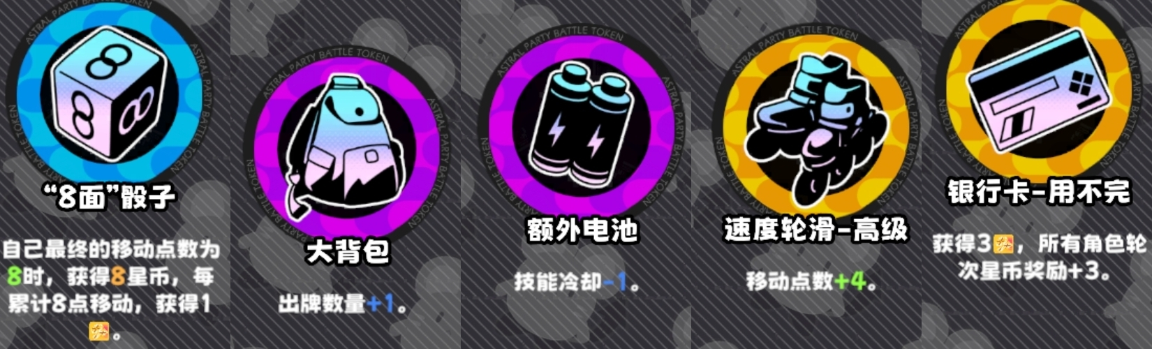 备选筹码:银行卡—用不完、“8面”骰子、星光锤、银行卡—余额多、ATM机、魔法箭袋、标靶、手持风扇—小、标记喷罐、普通瞄具等。
