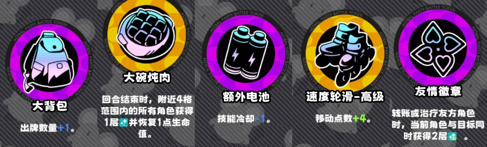 备选筹码:魔法箭袋、标靶、手持风扇—小、标记喷罐、普通瞄具、可口糖果、维生素药丸、友情徽章、大碗炖肉等