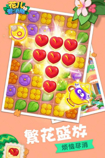一款以花园经营为叙事主线的三消类游戏。玩家通过点击拖拽方式连接相同花朵完成消除,触发华丽特效并积累资源。核心玩法围绕600余关剧情任务展开,难度梯度平缓上升。通关目标包括清除指定数量鲜花、合成特定品种等。特色道具如小火箭、爆炸炸弹可实现大范围清除,有效应对高难度布局,助力花店升级与场景拓展。