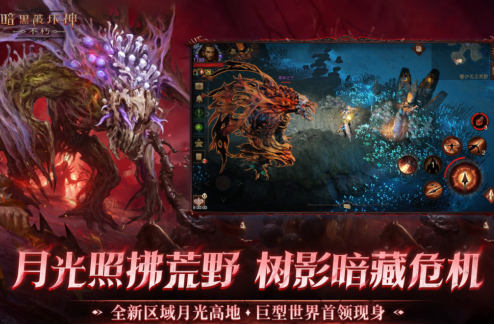 暴雪授权开发的正统续作,完整继承《暗黑破坏神》IP的世界观架构与美术基因。场景涵盖荒芜废土、灼热沙海、腐化神殿等六大主区域,怪物AI具备协同攻击与地形利用行为。副本设计强调阶段式BOSS战,需配合队友完成破盾、打断、聚怪等战术动作。装备词缀系统深度还原PC端体验,掉落机制保留高稀有度词条随机性,角色成长曲线兼顾新手引导与后期深度构筑空间。