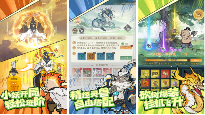 本作将国风修真世界观与资源采集深度结合。玩家化身浪浪山背景下的初阶小妖,通过砍树这一日常行为获取“灵木”“古藤”等特殊材料,用于炼制法宝、淬炼神兵、突破境界。游戏采用水彩渲染画风,场景层次丰富,UI设计兼顾传统美学与现代交互逻辑。砍树即爆装的设定大幅缩短养成周期,助力玩家高效达成飞升目标。