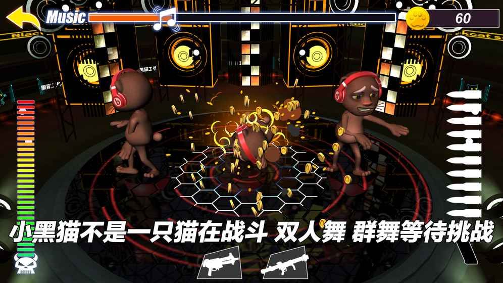 本作以荒诞幽默为基调,设定玩家使用各类火力武器干扰一只沉迷舞蹈的拟人化黑猫。黑猫的舞步节奏直接影响其防御等级成长,动作越密集,抗性越强;玩家需把握节拍空隙实施精准打断,形成“节奏压制—能力升级—再压制”的动态博弈循环。配乐风格魔性洗脑,强化行为反馈的戏剧张力。