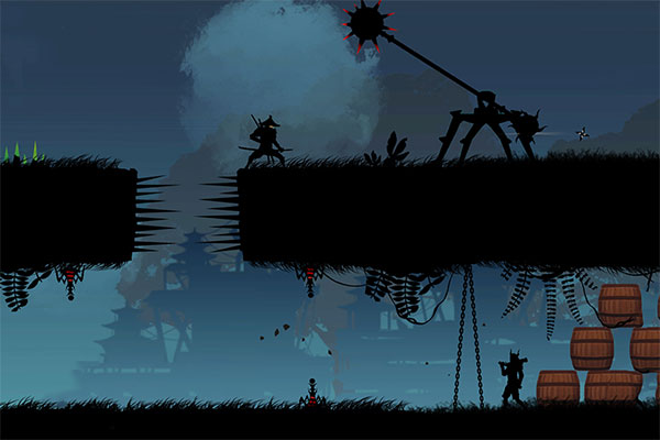 本作采用高对比度剪影式水墨表现手法,人物轮廓利落如刀刻,背景则以泼墨晕染勾勒出山林、古寺与雾霭,整体画面兼具肃杀气韵与东方诗意。剧情采用典型日式物语结构,围绕多位身负使命的忍者展开;每位角色拥有差异化位移技与终结技,支持三段式跳跃、墙面蹬踏及瞬身闪避。关卡划分为雪域、竹林、古城三大主题地图,每类地图对应不同AI行为模式的敌人组合,确保战斗体验持续新鲜。