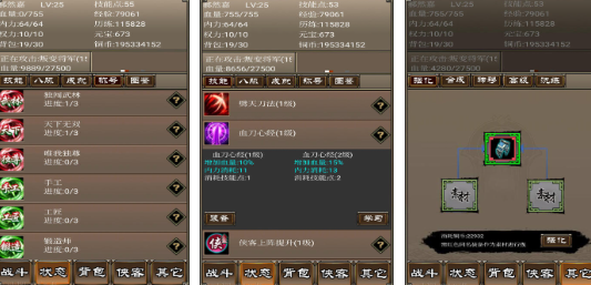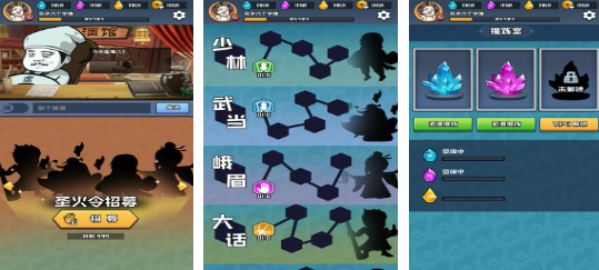 美术风格致敬经典武侠影视,营造快意恩仇的沉浸式江湖氛围。玩家通过招募侠客组建门派,侠客自动闯荡、挑战高手、搜集武学秘籍。仅关键节点(如装备替换、羁绊激活)需手动干预,其余流程全自动演进,在降低操作强度的同时保留策略纵深感。