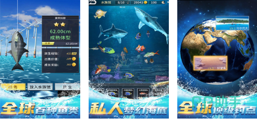 基于Unity 3D引擎构建全动态3D垂钓世界,支持360°自由旋转视角与深度聚焦水下生态。独创水族馆经营模块,玩家可将捕获鱼类移入虚拟展馆,通过喂养、互动提升亲密度并解锁专属图鉴条目。竞技场采用公平匹配机制,禁用付费属性加成,强调操作技巧与环境预判能力。中国境内八大典型钓场(如太湖、千岛湖、南海渔场)均按实测数据建模,稀有鱼种捕获触发专属成就系统。