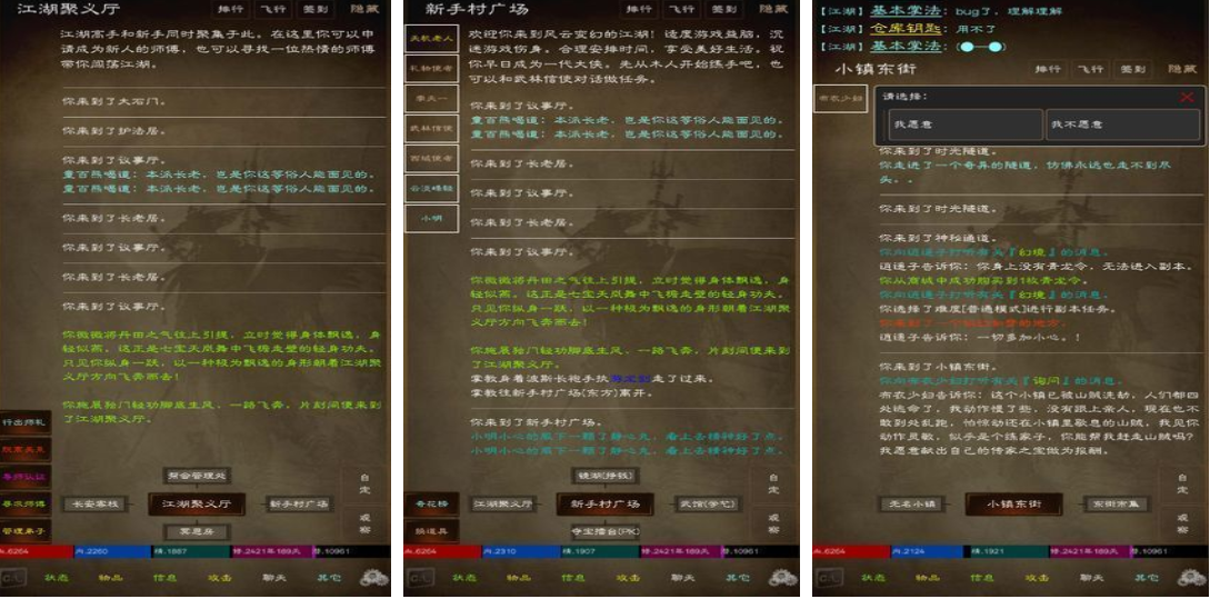 竖屏适配的武侠题材文字挂机游戏,采用半自动指令系统:玩家设定心法、招式、轻功倾向后,系统依规则自主演算江湖历练过程。人物关系网覆盖师徒、仇敌、红颜、同门四大维度,关键抉择将触发隐藏支线与结局。武功数值含内力上限、招式破防率、连击判定阈值等细分参数,战斗结果由文字实时推演,无固定模板,强调策略预判与资源分配。