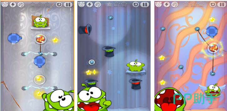 作为物理益智类标杆作品,本作延续原版核心机制:通过精准切割绳索,引导糖果落入怪物口中。关卡设计强调逻辑推演与时机把控,每关均含三颗星星收集目标。卡通渲染风格统一,角色动作细腻,碰撞与重力反馈真实,所有内容预装于安装包内,全程无需联网加载资源或校验授权。