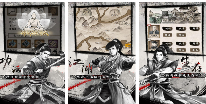面向武侠题材爱好者的纯单机开放世界RPG。采用水墨写意风格构建地图与角色,武功体系、门派任务、生存要素(饥饿/体力/伤势)全部本地模拟。江湖事件随机生成,NPC行为逻辑嵌入客户端代码,无服务器端脚本支撑。资源采集、炼药、锻造等系统均基于本地数据库运算,完整体验无需任何网络权限。